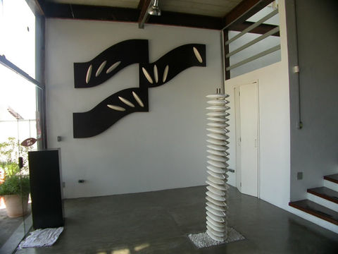 Ao conceber o ateliê, em conjunto com o saudoso arquiteto Gilberto Nascimento, responsável pelo projeto e realização, juntei elementos da história da arte, conceitos sobre o fazer artístico e imposições de caráter técnico inerentes à cerâmica. Sim, porque um ateliê de cerâmica deve atender a questões quase industriais e considerar que a obra, do desenho à finalização, passa por sucessivas etapas: modelagem, moldagem, fundição, acabamento, primeira queima, esmaltação, segunda queima, terceira queima…